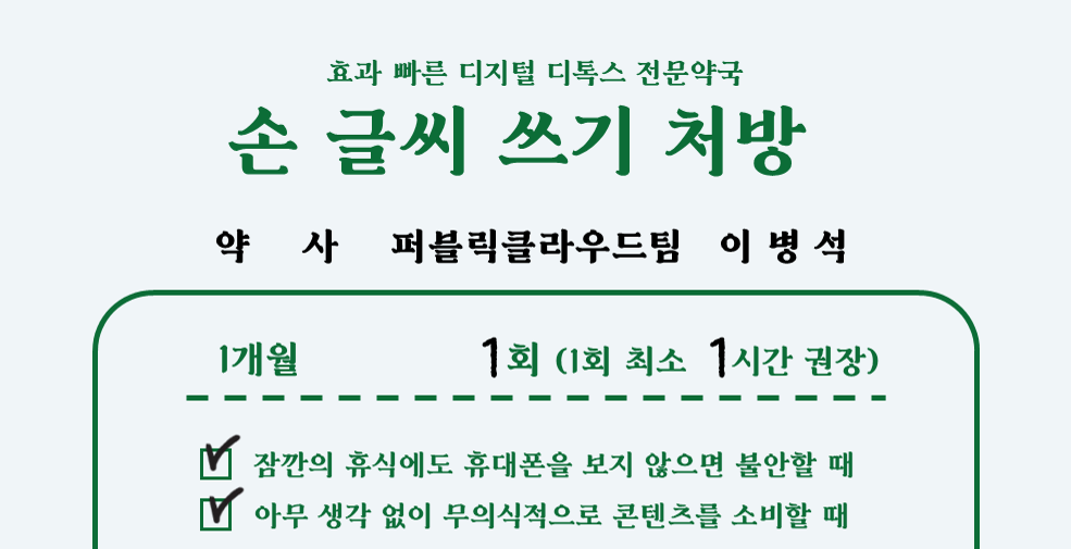 ‘그거 뭐라고 하지?’ ‘왜 그 단어 있잖아’ 이런 경험 한 번쯤 다들 있으시죠? 순간적인 자극에 반복적으로 노출되는 숏폼에 익숙해지면서 중요한 정보를 기억하지 못하거나 집중력이 저하되는 ‘디지털 치매’란 말도 있던데(...) 방금 말했던 것도 생각나지 않는 순간을 몇 번 겪고 나니 덜컥 겁이 나더라구요. 그래서 휴대폰, 컴퓨터와 조금이라도 거리 두기를 해보자고 마음 먹었어요. |