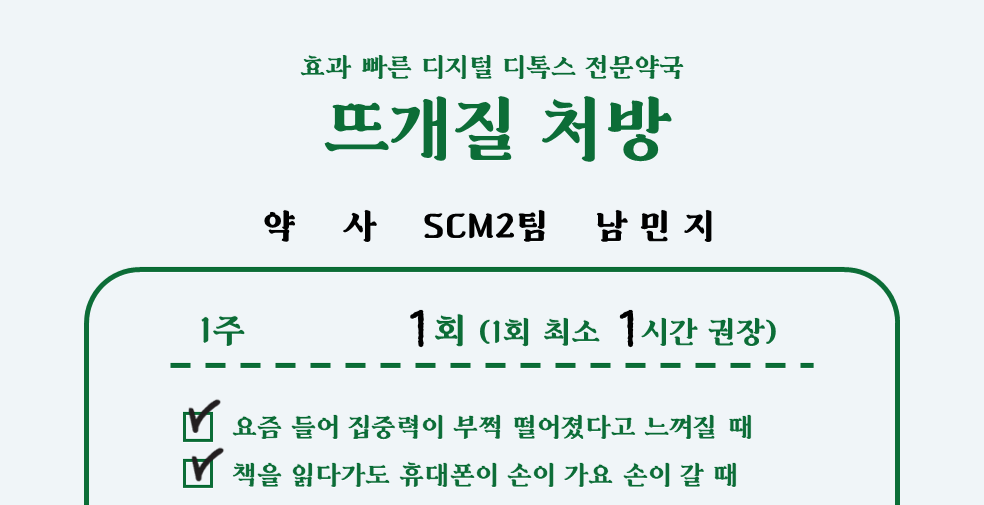 여가시간에 게임을 하거나 영상을 보는데 필요 이상의 시간을 보내기도 하고, 숏폼에 자주 노출되면서 집중력이 점점 떨어진다는 생각을 종종 하게 됐어요. ‘이대로는 안되겠다’ 마음먹게 되는 순간이 오더라고요.