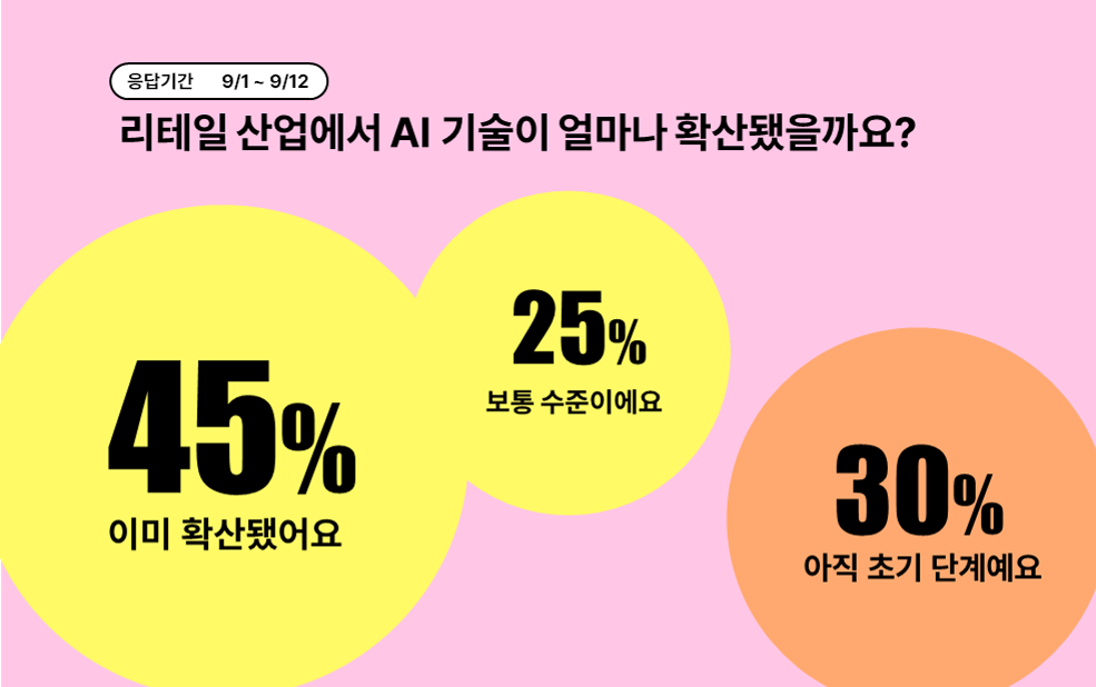 🙋♂️ 유통은 상품 기획, 생산부터 이커머스 플랫폼 개발, 재고/물류, 마케팅, CS까지 다양한 영역을 포괄하는 산업군이에요. 이 모든 영역에서 생성 AI는 이미 상당한 영향력을 보여주고 있기 때문에 다른 산업군 대비, 확산과 변화가 빠를 수 밖에 없다고 생각해요.